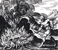 verbrannten Feuersalamander auf ihren Schmelzfeuern und träufelten